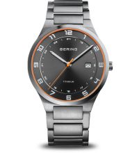 El brazalete de Titanio de alta calidad - color: Plata - con Hebilla plegable desplegable le proporcionará un placer adicional con su nuevo reloj Bering. El brazalete de Titanio ofrece una gran comodidad de uso y puede llevarse hasta una circunferencia de muñeca máxima de 210 mm.