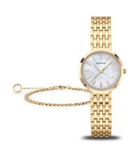 El brazalete de Acero inoxidable de alta calidad - color: Plata, Oro - con Hebilla plegable desplegable le proporcionará un placer adicional con su nuevo reloj Bering. El brazalete de Acero inoxidable ofrece una gran comodidad de uso y puede llevarse hasta una circunferencia de muñeca máxima de 200 mm.