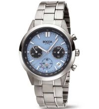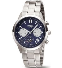 movimiento de cuarzo (con batería) que, como es habitual en los relojes Boccia, garantiza un cronometraje preciso y ofrece las siguientes funciones: Hora, Minuto, Segundo, Fecha, Cronógrafo, 24 horas.