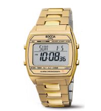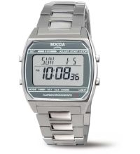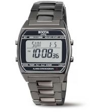 movimiento de cuarzo (con batería) que, como es habitual en los relojes Boccia, garantiza un cronometraje preciso y ofrece las siguientes funciones: Hora, Minuto, Segundo, Fecha, Día de la semana, 24 horas, Cronógrafo, Alarma, Multifunción.
