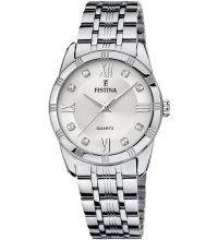 El brazalete de Acero inoxidable de alta calidad - color: Plata - con Hebilla plegable desplegable le proporcionará un placer adicional con su nuevo reloj Festina. El brazalete de Acero inoxidable ofrece una gran comodidad de uso y puede llevarse hasta una circunferencia de muñeca máxima de 170 mm.