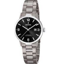 El brazalete de Titanio de alta calidad - color: Plata - con Hebilla plegable desplegable le proporcionará un placer adicional con su nuevo reloj Festina. El brazalete de Titanio ofrece una gran comodidad de uso y puede llevarse hasta una circunferencia de muñeca máxima de 180 mm.
