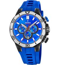 El brazalete de silicona de alta calidad - color: Azul - con Hebilla desplegable le proporcionará un placer adicional con su nuevo reloj Festina. El brazalete de silicona ofrece una gran comodidad de uso y puede llevarse hasta una circunferencia de muñeca máxima de 220 mm.