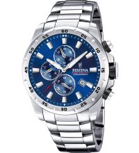 movimiento de cuarzo (con batería) que, como es habitual en los relojes Festina, garantiza un cronometraje preciso y ofrece las siguientes funciones: 24 horas, Cronógrafo, Fecha, Minuto, Segundo, Hora.