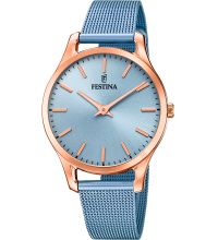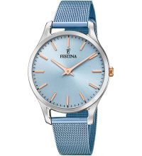 El brazalete de Acero inoxidable de alta calidad - color: Azul - con La hebilla del clip desplegable le proporcionará un placer adicional con su nuevo reloj Festina. El brazalete de Acero inoxidable ofrece una gran comodidad de uso y puede llevarse hasta una circunferencia de muñeca máxima de 190 mm.
