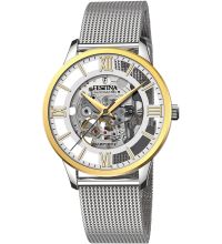 movimiento automático que, como es habitual en los relojes Festina, garantiza un cronometraje preciso y ofrece las siguientes funciones: Minuto, Segundo, Hora.
