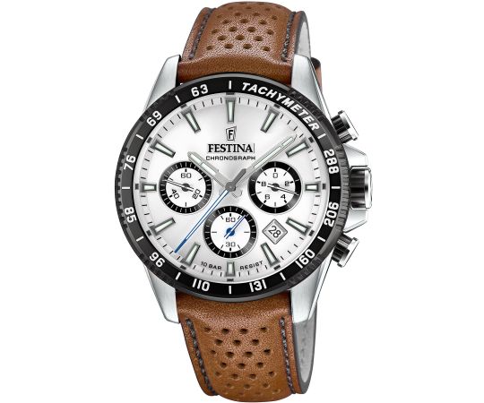 movimiento de cuarzo (con batería) que, como es habitual en los relojes Festina, garantiza un cronometraje preciso y ofrece las siguientes funciones: Cronógrafo, Fecha, Minuto, Segundo, Hora.