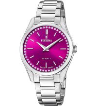 El brazalete de Acero inoxidable de alta calidad - color: Plata - con Hebilla plegable desplegable le proporcionará un placer adicional con su nuevo reloj Festina. El brazalete de Acero inoxidable ofrece una gran comodidad de uso y puede llevarse hasta una circunferencia de muñeca máxima de 180 mm.