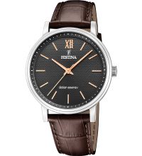 El brazalete de Piel de becerro de alta calidad - color: Marrón - con Hebilla desplegable le proporcionará un placer adicional con su nuevo reloj Festina. El brazalete de Piel de becerro ofrece una gran comodidad de uso y puede llevarse hasta una circunferencia de muñeca máxima de 220 mm.