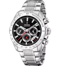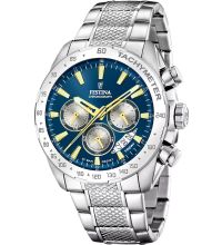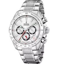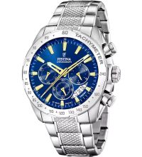 movimiento de cuarzo (con batería) que, como es habitual en los relojes Festina, garantiza un cronometraje preciso y ofrece las siguientes funciones: Hora, Minuto, Segundo, Fecha, Cronógrafo, 24 horas, Día de la semana, Taquímetro.
