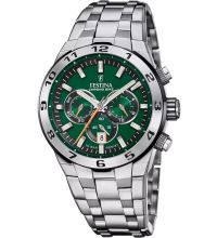 movimiento de cuarzo (con batería) que, como es habitual en los relojes Festina, garantiza un cronometraje preciso y ofrece las siguientes funciones: Hora, Minuto, Segundo, Fecha, Cronógrafo, 24 horas.