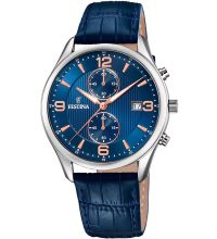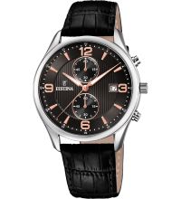 movimiento de cuarzo (con batería) que, como es habitual en los relojes Festina, garantiza un cronometraje preciso y ofrece las siguientes funciones: Cronógrafo, Fecha, Minuto, Segundo, Hora.