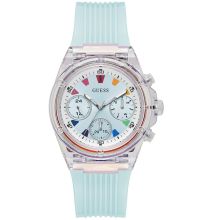 movimiento de cuarzo (con batería) que, como es habitual en los relojes Guess, garantiza un cronometraje preciso y ofrece las siguientes funciones: Hora, Minuto, Segundo, Fecha, Día de la semana, 24 horas.