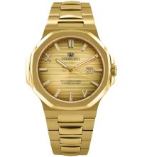 El brazalete de Acero inoxidable de alta calidad - color: Oro - con El cierre de mariposa desplegable le proporcionará un placer adicional con su nuevo reloj Louis XVI. El brazalete de Acero inoxidable ofrece una gran comodidad de uso y puede llevarse hasta una circunferencia de muñeca máxima de 200 mm.