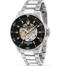 movimiento automático que, como es habitual en los relojes Maserati, garantiza un cronometraje preciso y ofrece las siguientes funciones: Hora, Minuto, Segundo, Reserva de energía.