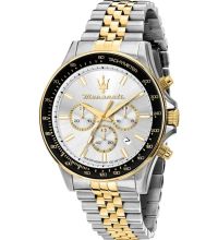 movimiento de cuarzo (con batería) que, como es habitual en los relojes Maserati, garantiza un cronometraje preciso y ofrece las siguientes funciones: Hora, Minuto, Segundo, Fecha, Cronógrafo, 24 horas, Taquímetro.