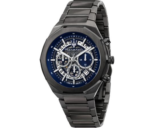 movimiento de cuarzo (con batería) que, como es habitual en los relojes Maserati, garantiza un cronometraje preciso y ofrece las siguientes funciones: Hora, Minuto, Segundo, Fecha, Cronógrafo, 24 horas.