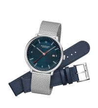 El brazalete de Acero inoxidable de alta calidad - color: Azul - con Hebilla plegable desplegable le proporcionará un placer adicional con su nuevo reloj Mondaine. El brazalete de Acero inoxidable ofrece una gran comodidad de uso y puede llevarse hasta una circunferencia de muñeca máxima de mm.