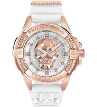 movimiento de cuarzo (con batería) que, como es habitual en los relojes Philipp Plein, garantiza un cronometraje preciso y ofrece las siguientes funciones: Hora, Minuto, Segundo.