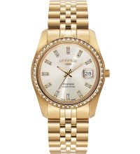 El brazalete de Acero inoxidable de alta calidad - color: Oro - con El cierre de mariposa desplegable le proporcionará un placer adicional con su nuevo reloj Roamer. El brazalete de Acero inoxidable ofrece una gran comodidad de uso y puede llevarse hasta una circunferencia de muñeca máxima de 195 mm.