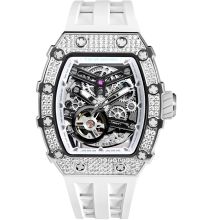 El brazalete de Caucho de alta calidad - color: Blanco - con Hebilla desplegable le proporcionará un placer adicional con su nuevo reloj Tsar Bomba. El brazalete de Caucho ofrece una gran comodidad de uso y puede llevarse hasta una circunferencia de muñeca máxima de mm.