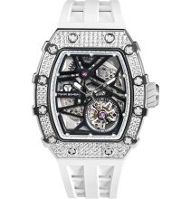 El brazalete de Caucho de alta calidad - color: Blanco - con Hebilla desplegable le proporcionará un placer adicional con su nuevo reloj Tsar Bomba. El brazalete de Caucho ofrece una gran comodidad de uso y puede llevarse hasta una circunferencia de muñeca máxima de mm.