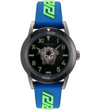 El brazalete de silicona de alta calidad - color: Azul, Verde - con Hebilla plegable desplegable le proporcionará un placer adicional con su nuevo reloj Versace. El brazalete de silicona ofrece una gran comodidad de uso y puede llevarse hasta una circunferencia de muñeca máxima de 220 mm.