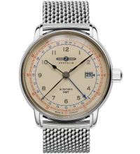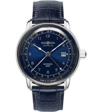 movimiento automático que, como es habitual en los relojes Zeppelin, garantiza un cronometraje preciso y ofrece las siguientes funciones: Hora, Minuto, Segundo, Fecha, GMT, Segunda zona horaria.