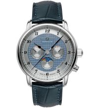 movimiento de cuarzo (con batería) que, como es habitual en los relojes Zeppelin, garantiza un cronometraje preciso y ofrece las siguientes funciones: Hora, Minuto, Segundo, Fecha, Día de la semana, Fase lunar.