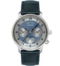 movimiento de cuarzo (con batería) que, como es habitual en los relojes Zeppelin, garantiza un cronometraje preciso y ofrece las siguientes funciones: Hora, Minuto, Segundo, Fecha, Día de la semana, Fase lunar.
