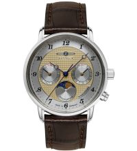 movimiento de cuarzo (con batería) que, como es habitual en los relojes Zeppelin, garantiza un cronometraje preciso y ofrece las siguientes funciones: Hora, Minuto, Segundo, Fecha, Día de la semana, Fase lunar.