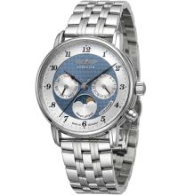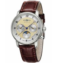 Swiss Mademovimiento de cuarzo (con batería) que, como es habitual en los relojes Zeppelin, garantiza un cronometraje preciso y ofrece las siguientes funciones: Fecha, Minuto, Fase lunar, Segundo, Hora, Día de la semana.