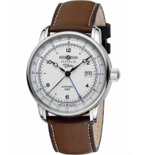 movimiento automático que, como es habitual en los relojes Zeppelin, garantiza un cronometraje preciso y ofrece las siguientes funciones: Segunda zona horaria, Fecha, GMT, Minuto, Segundo, Hora.